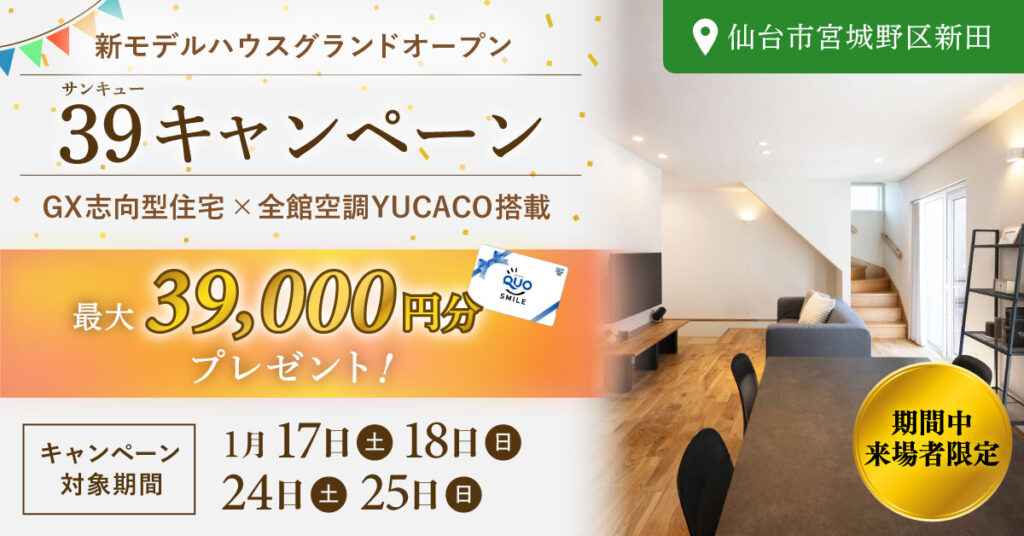 【最大39,000円分プレゼント】モデルハウスグランドオープン記念!39キャンペーン